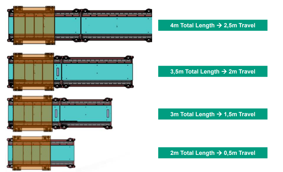 El diseño modular del FFTlinetec 7th Axis asegura un alto grado de flexibilidad con tiempos de entrega cortos. Los módulos individuales pueden combinarse libremente en incrementos de 0.5 m hasta una longitud de 30 m.